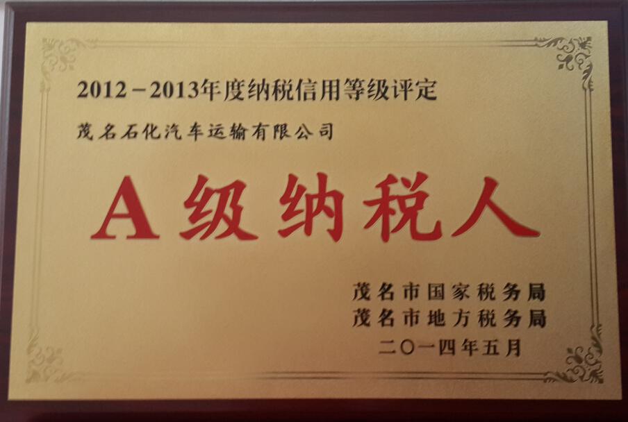> 2012-2013年度納稅等級評定