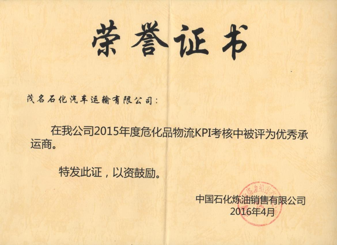 > 2015年度中石化優(yōu)秀承運(yùn)商